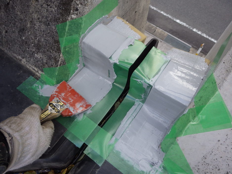 橋の構造上、地覆部止水材を搭載したくても装置が埋め込めないケースもあり、そうした時には代替え方法としてシール材での処理が行われます。