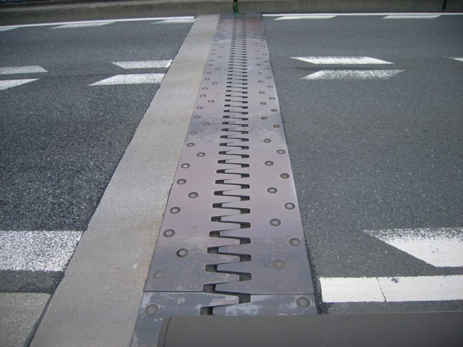 フィンガージョイントとは伸縮装置の1つで、橋や高速道路の繋ぎ目に設置されてます。